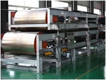 本项目中采用双钢带压机制备热塑性复合材料层合板材。双钢带压机是将热塑性预浸料(单向预浸料或织物型预浸料)层合为热塑性复合材料板材的连续化工艺装备,是批量生产新型热塑性复合材料的自动化设备之一。利用该设备可以连续地将热塑性预浸料根据不同的工艺要求层合成不同厚度的热塑性复合材料板材。