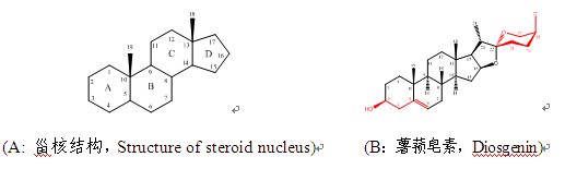 图1. 甾核及薯蓣皂素的结构