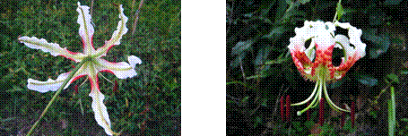 主要技术特点: 皖南百合1号亲本的材料来源为药百合(Lilium speciosum Thunb. var. gloriosoides Baker)。药百合仅分布于安徽、江西、湖南和广西,安徽省内分布仅在皖南部分山区,分布下线在370米左右。皖南百合1号以其花下垂,花被片在开放过程中由直至完全翻卷成动态变化,其边缘波状,白色,下部1/2-1/3有紫红色斑块和斑点,蜜腺两边有红色的流苏状突起和乳头状突起,后期整朵翻卷成球状,花极美丽,是著名的观赏植物。鳞茎可入药,亦可供食用。