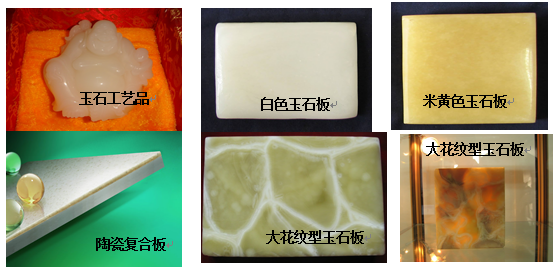 微晶玉石以矿渣、陶瓷废弃物等为主要生产原料,参照天然玉石的化学成分,模拟天然玉石的形成规律制备而成。“玉石”外观酷似天然玉石,具有蜡脂般的光泽,温润的质感,其嫩白无暇如和田玉、高贵典雅如田黄石、翠绿晶莹如翡翠,种类繁多,花色齐全,可以同天下所有的名贵玉石相媲美;性能优于天然玉石,具有耐高温、抗老化,耐磨损,抗腐蚀,无辐射等优异的理化性能,可以替代所有的石材和玉石。