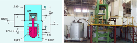 高强耐热镁合金液态精密成型技术示意图和生产现场图