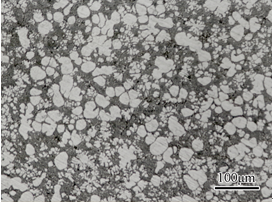 (2) 应用滚筒搅拌方法制备了ADC12铝合金半固态流变浆料,研究了不同浇注温度、搅拌强度、保温时间等对ADC12合金初生固相的影响规律,包括初生相尺寸、形貌和分布状态等,并得到了优化的ADC12合金流变制浆参数,制备的浆料组织如图3所示。