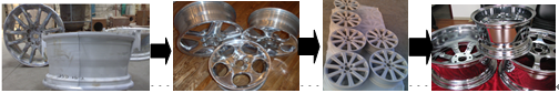 本项目的新技术具有生产流程短、环保、节能、低成本、达到现有汽车轮毂的工业化使用相关技术标准的特点,经济效益和推广应用价值明显。新型工艺路线如下: