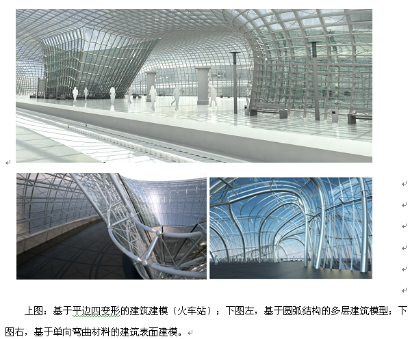 市场预测:现代建筑大都具有复杂的自由外观,但是这类建筑外形的计算机辅助设计和建模却是一个难题。我们掌握该领域世界上最新的研究成果,研发了以降低建造成本为优化目标的建模技术,并且开发了一系列软件,较好的解决了自由外形建筑表面的计算机辅助设计问题。这些技术解决了具有自由外观的建筑外形设计问题,大大降低建筑的建造成本,具有良好的市场前景。