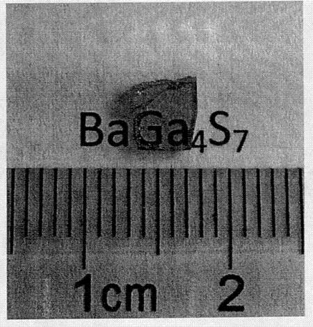 本发明涉及硫化镓钡单晶体及其生长方法及其红外非线性光学器件。其分子式为BaGa4S7,属于正交晶系,空间群为Pmn21,晶胞参数为a=14.755,b=6.228,c=5.929,α=β=γ=90°。该非线性光学材料的制备可采用坩锅下降法,得到它们的化合物及其单晶。该材料可应用于制造二次谐波发生器,上、下频率转换器,光参量振荡器。