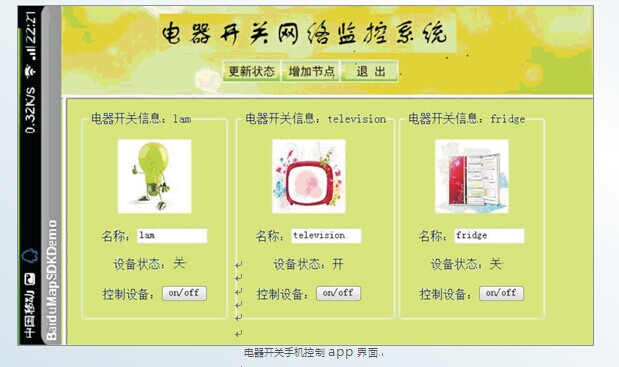当人们离开家居或者办公环境,经常需要知道一些重要电器(如空调、电脑)等设备的开关状态,确认其电源开关处于关闭,以避免天气、打雷等环境变化引起的电器损坏。本项目正是针对这一需求设计,实现了一种可以通过手机app网络监控电器开关的电子标签电路。通过电子标签控制电器开关的通断,同时检测电器开关的真实状态,然后再通过与电子标签读写器连接的ARM计算机上网,返回一个开关ID号和开关状态确认信号,这样用户在远程就能够通过手机app查看电器开关的真实状态,实现网络对电器开关的远程监控;用户也可以在远程通过“刷新”命令,获得各个电器电源开关的真实状态,有针对性地控制各电源开关,从而真正做到对电器开关的监控,同时也是一种节电、节能的手段。本电路低功耗,小体积,加装方便;遥控和手动控制相互独立,互不影响;通过手机app实现监控操作,使用方便,可应用于各种需要远程监控电器开关的场合。