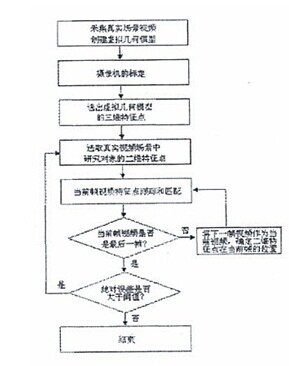 本发明公开了一种半自动化对齐的视频融合系统及方法,该方法包括如下步骤:通过摄像机采集真实场景视频,创建虚拟儿何模型;摄像机的标定;选取虚拟几何模型的三维特征点;选取真实场景视频中研究对象的二维特征点:在第一帧视频中的研究对象上选择8个二维特征点,将第一帧视频作为当前帧视频;当前帧视频中特征点跟踪和匹配;将真实场景视频的下一帧视频作为当前帧视频,直至真实场景视频结束;进行误差反馈控制。本发明成本低、设备简单、执行效率高、可操作性强,能够将真实视频与虚拟几何模型高效率进行重叠融合,以半自动化对齐的视频融合达到了将虚拟几何模型和现实场景相结合的目的。