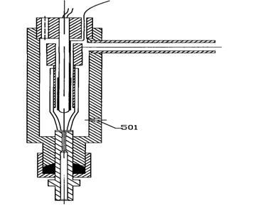 本发明涉及一种表面热离子化检测器,包括发射极、加热棒、收集极、下端为喇叭形变径的连接管和外壳等组件。发射极用钼或铂或合金材料制成,为圆筒状或螺旋状绕丝。加热棒对金属发射极加热并且承担支撑发射极。当发射极表面加热到300~500℃时,有机胺类化合物与发射极表面碰撞,发生表面电离产生正离子而被检测。所发明的检测器对叔胺的最小检出量小于10-12g/s。该检测器可选择性的检测胺和肼及其衍生物等,可作为毛细管和填充柱气相色谱等系统的检测器,也可以作为传感器单独使用。